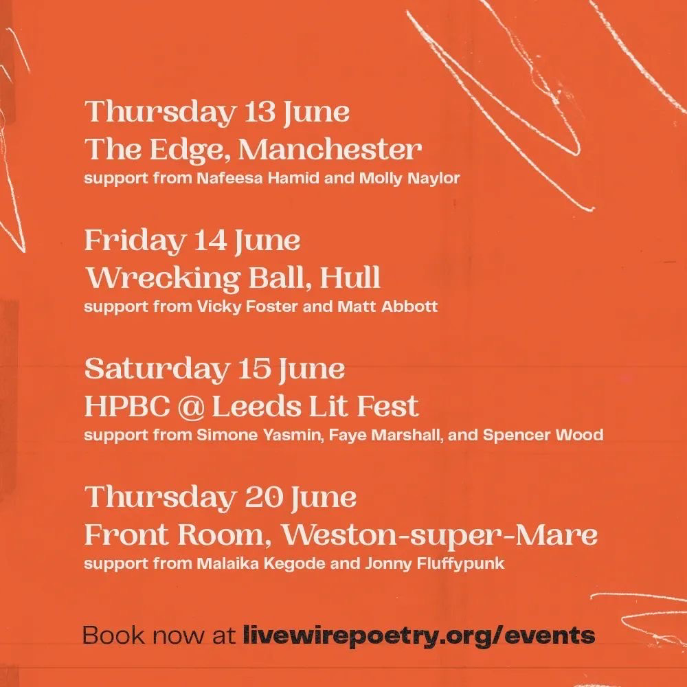 I continue my book tour with a batch of LIVEwire shows, I will be on stage with my dear friends Matt Abbott and Maria Ferguson and all of these mighty and powerful and brilliant poets. I am so looking forward to all of these shows.
